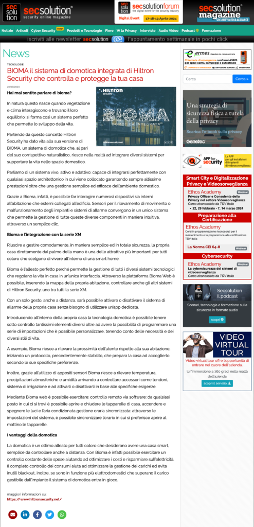 BIOMA il sistema di domotica integrata di Hiltron Security che controlla e protegge la tua casa – SEC SOLUTION