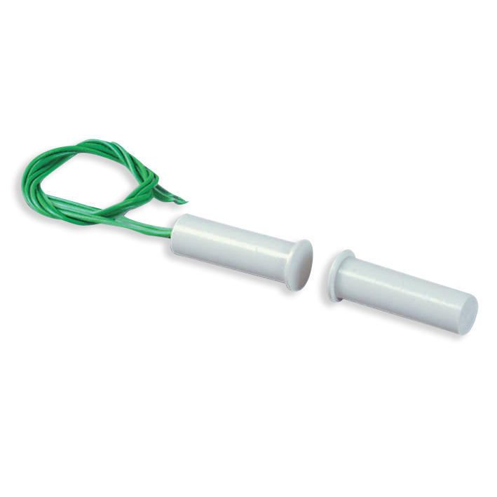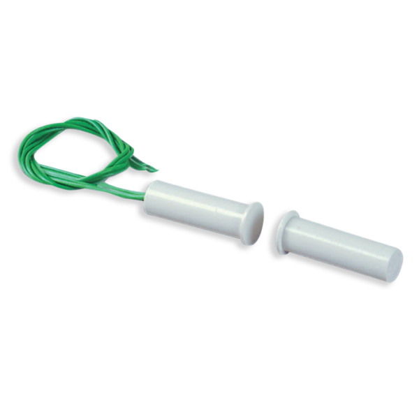 Conforme al 1° livello della norma CEI79-2Colore: bianco. Installazione: ad incasso su porte e finestre. Terminali di Uscita: 4 fili. Voltaggio max.: 30V. Corrente max.: 500mA. Lunghezza del cavo ± 10mm: 25cm. Distanza massima di funzionamento: 8mm. Uscita allarme: NC. Contenitore: ABS. Temperatura di funzionamento: +5°C ÷ 40°C. Dimensioni (P): 27mm. Dimensioni (Ø): 8mm. Confezioni da 50PZ.