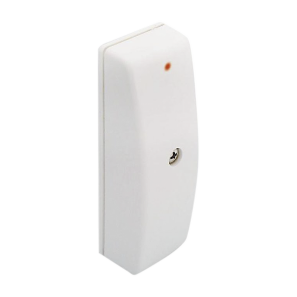 Sensibilità regolabile Tamper di protezione antiapertura Sensore piezoelettrico Conforme alla norma CEI EN 50131-1Colore: bianco. Grado di sicurezza: 1. Classe ambientale: 2. Installazione: a parete e su vetro. Tensione nominale di alimentazione: 12Vcc ±10%. Assorbimento massimo: 10mA. Copertura: 1,5mt (cemento) ÷ 3,5mt (vetro, legno, acciaio). Uscita allarme: NC. Contenitore: ABS. Temperatura di funzionamento: +5°C ÷ 40°C. Dimensioni (L): 77mm. Dimensioni (A): 26mm. Dimensioni (P): 21mm