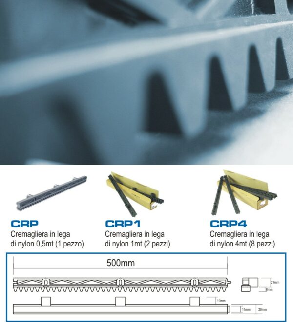 Cremagliera in lega di Nylon, confezione da 4 mt. (8 pezzi)