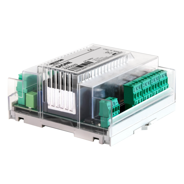 Dione è una scheda avanzata per la gestione e la regolazione di lampade dimmerabili (e non) suddivise su 4 canali. Può funzionare in modalità stand-alone o con controllo via bus RS-485, attraverso Gea e il software Atmosfera eye. Inoltre, se collegata in serie a Urano-P o Thunder, permette la misurazione dei carichi in tempo reale. La scheda è predisposta per fissaggio su un centralino con guida DIN, dove occupa 6,5 moduli e, grazie agli anelli laterali opzionali, può essere fissata con viti su scatole di derivazione o pareti leggere. Tutte le connessioni avvengono con morsettiere estraibili serigrafate, per facilitarne il cablaggio e la sostituzione. Gli 8 ingressi digitali sono programmabili singolarmente in modalità passo passo, dimmerazione e temporizzati, oppure con comandi multipli e/o generali. Gli ingressi per i sensori di luminosità premettono di adattare l’intensità luminosa delle lampade ai lux ambiente per mantenere un’illuminazione costante.