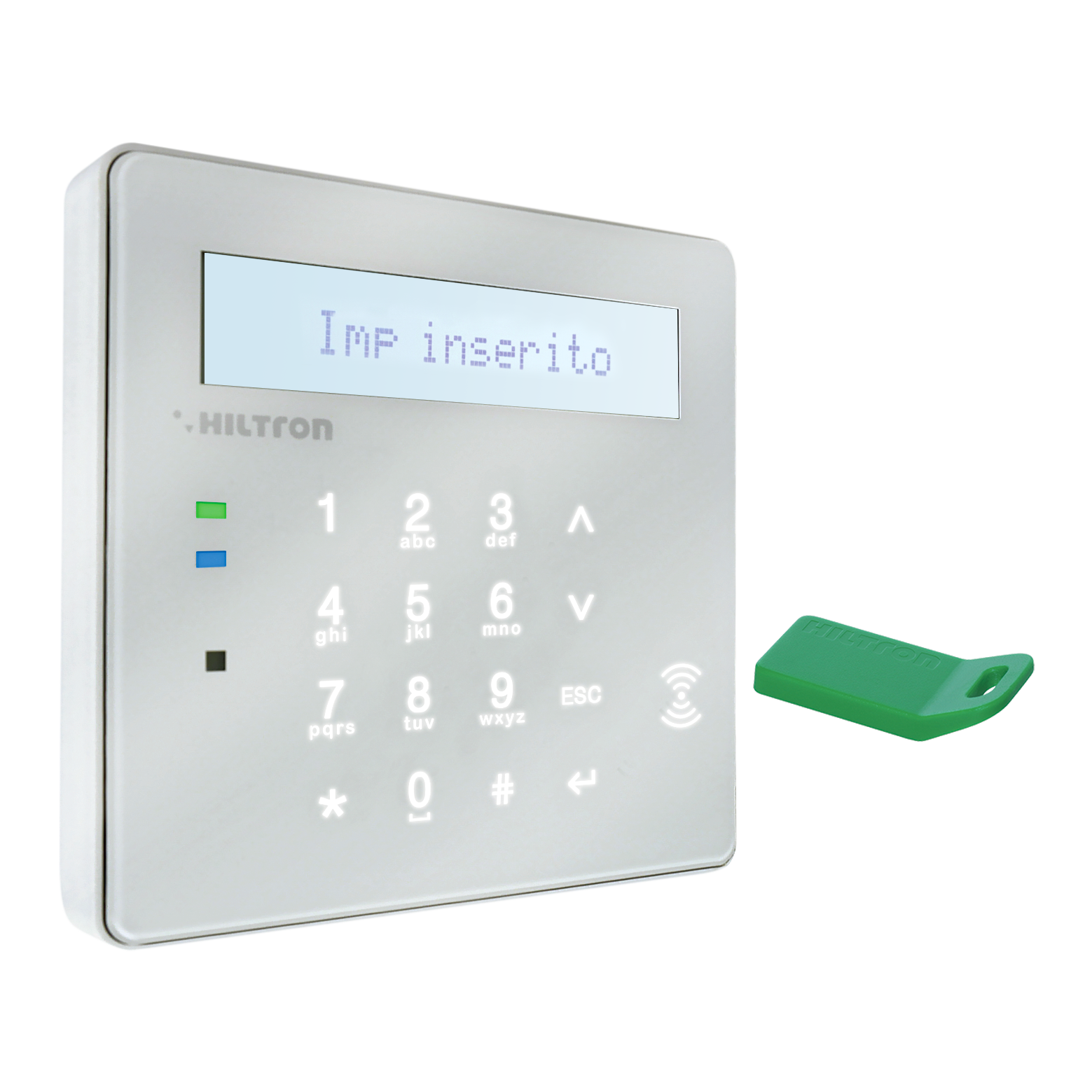 Compatibile con centrali PROTEC4GSM e PROTEC8GSM, Design elegante piatto con tasti a sfioramento e retroilluminati, Lettore chiave di prossi- mità RFID, Installazione con predisposizione per cassetta murale 503, Ampio display alfanumerico retroilluminato 2 x 16 caratteri, Tensione di alimentazione : 12 Vdc ± 10 %, Assorbimento normale : 150mA, Assorbimento massimo : 250mA, Grado di protezione del contenitore :IP40, Buzzer sonoro di segnalazione, Tamper di protezione antiapertura / antistrappo, Due led di segnalazione, Sensore di avvicinamento, Grado di sicurezza 1, Classe ambientale 2, Dimensioni (LxAxP) 132 x 132 x 20 mm, Conforme alla norma CEI EN50131-1