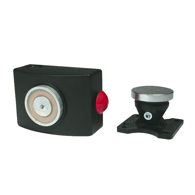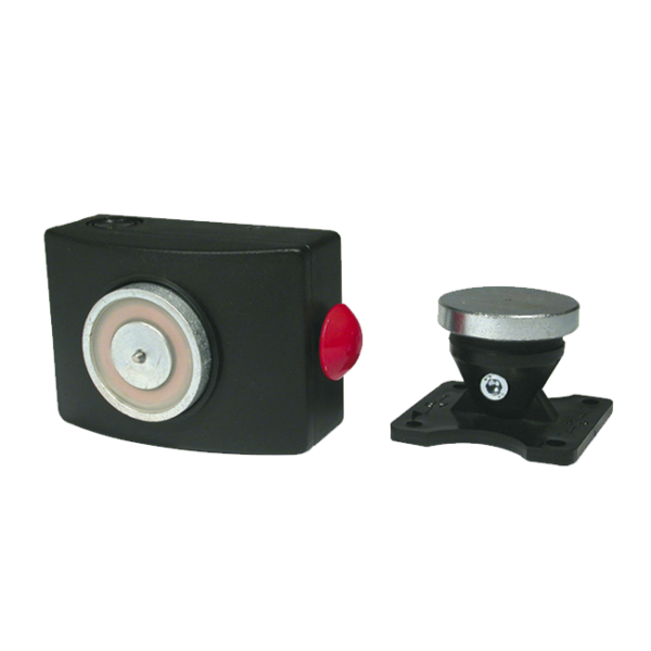 Elettromagnete con forza di trazione di kg. 50 ABS NERO Alim.: 22-28Vcc@100mA, IP 40, Dimensioni: 68x100x51mm
