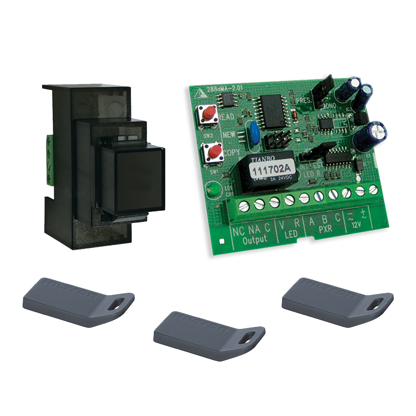Kit composto da PX100 a 12V + PXN200 + 3 chiavi di prossimità KEYN
