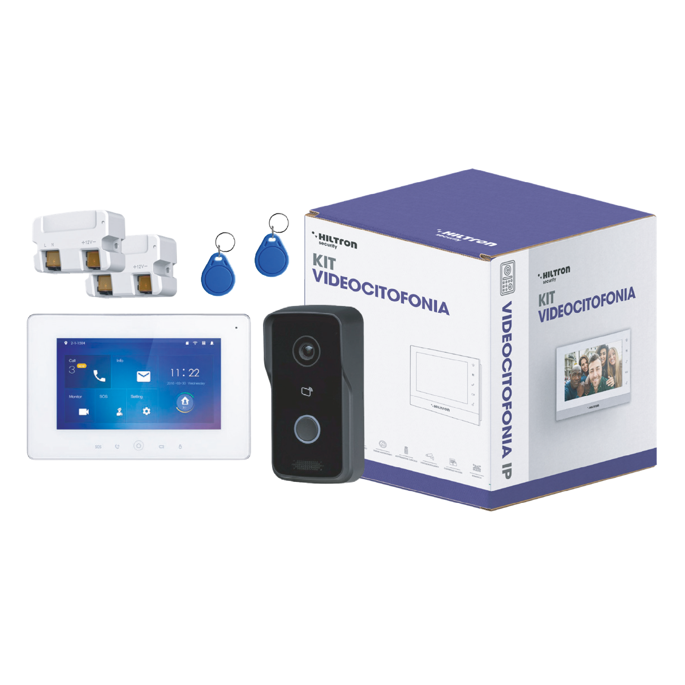 Kit videocitofonia IP monofamiliare WiFi con postazione esterna VIS1PEW +postazione interna VIS7PIW +2pz LAKEY +2pz alimentatore
