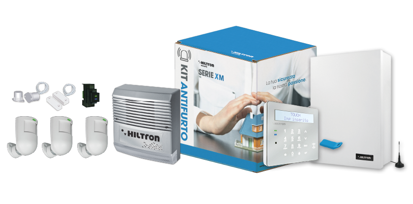 Kit con centrale ibrida XMR2000T + console XMTOUCHB + 3 XM12DG + 1 XM58 + 1 XM56 + 1 XM310 + 1 SP31 + 1 XM200K