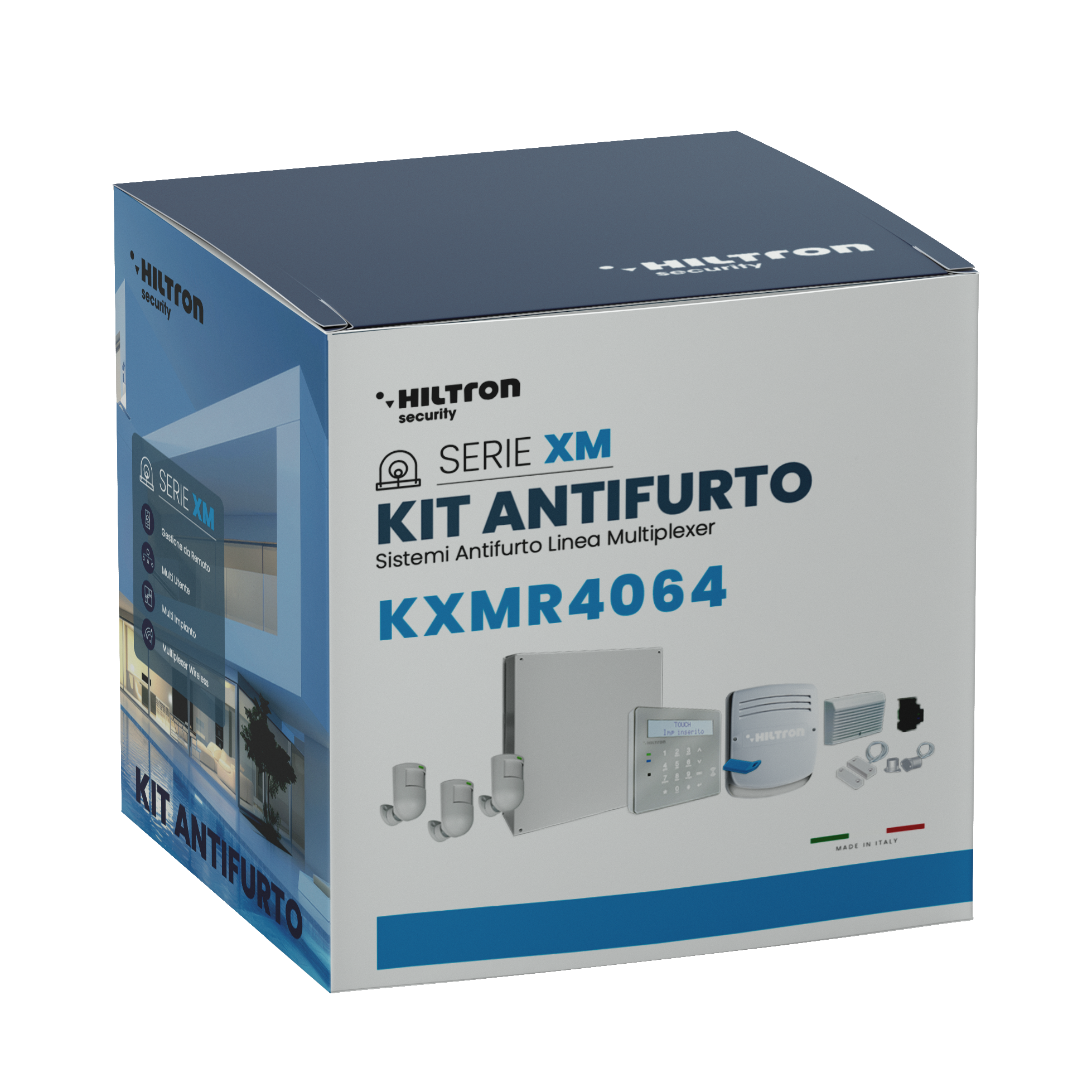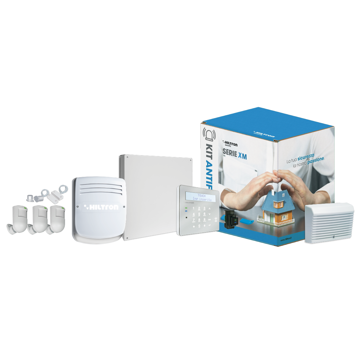 Kit con centrale ibrida XMR4064T + 3 rivelatori XM12DG +sirena XM350 +SP31 +XM200K +XM56 + XM58 (console XMTOUCHB inclusa)