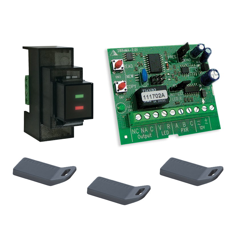 Kit composto da PX100 a 12V + PXN200 + 3 chiavi di prossimità KEYN