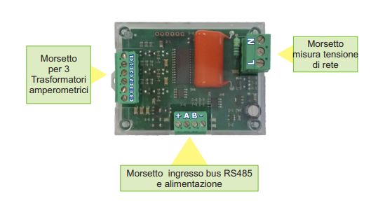 THUNDER è una scheda per il collegamento di TA per la valutazione dei consumi fino a 3 linee monofase (max 63A per linea). Tale valutazione è finalizzata alla gestione dello stacco carichi e richiede la presenza di Gea nell’impianto. Il funzionamento è indipendente da Urano P. È alimentata a 12V DC ed equipaggiata di porta bus RS-485 di comunicazione.