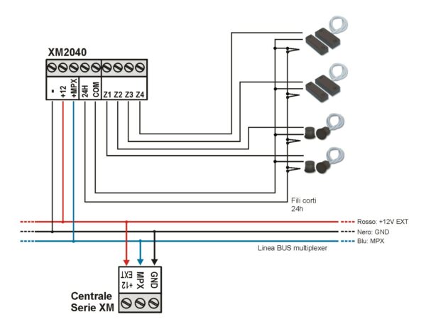 Connessione su linea bus MPX Ingresso 24h comune Impostazione logico/bilanciata per singolo ingresso con selettore multiplo Assorbimento massimo 25mA Numero di isolatori collegabili 4 per ogni centrale Sensibilità degli ingressi programmabile singolarmente in centrale (da 50mS a225mS con step di 25mS) Resistenza di bilanciamento ingresso 3300 ohm Resistenza massima chiusura ingresso logico 1000 ohm Tamper di protezione antiapertura